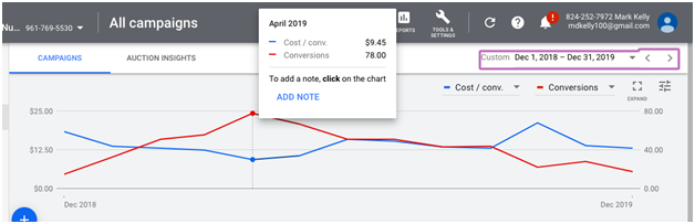 Here is a monthly view of performance from December 2018 to December 2019. As you can see, the best month was April 2019, which is the peak season (Spring) for Landscaping:
